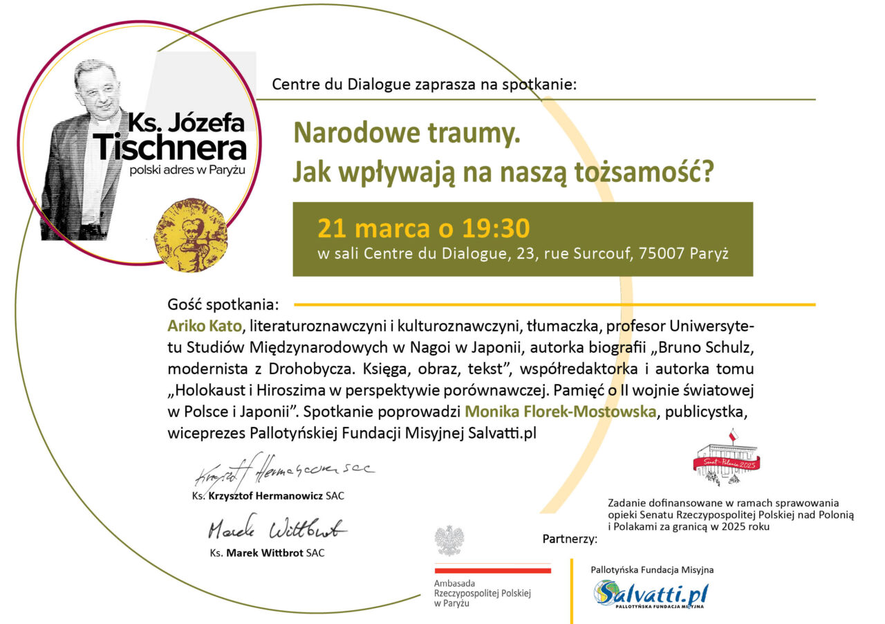 Gościem spotkania będzie prof. Ariko Kato – literaturoznawczyni i kulturoznawczyni, tłumaczka, profesor Uniwersytetu Studiów Międzynarodowych w Nagoi (Japonia), współautorka książki „Holokaust i Hiroszima w perspektywie porównawczej. Pamięć o II wojnie światowej w Polsce i Japonii”. Badaczka od lat zajmuje się problematyką reprezentacji II wojny światowej, Holokaustu oraz pamięci kulturowej w literaturze i sztuce.